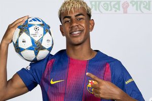 কদিন আগেই ১৮তম জন্মদিন পালন করেছেন লামিনে ইয়ামাল। কৈশোর পার করার আগেই ইয়ামালের নামের পাশে যোগ হয়েছে অনেক অর্জন ও স্বীকৃতি। তবে ইয়ামাল আরও বড় স্বপ্ন দেখেন। চ্যাম্পিয়নস লিগ, ব্যালন ডি’অর ও বিশ্বকাপ ট্রফিতে চোখ রেখে সামনে এগোতে চান বার্সেলোনার এই স্প্যানিশ উইঙ্গার। সম্প্রতি স্প্যানিশ টেলিভিশন চ্যানেল ‘টিভিই’–কে দেওয়া এক সাক্ষাৎকারে নিজের স্বপ্ন নিয়ে কথা বলেছন ইয়ামাল।