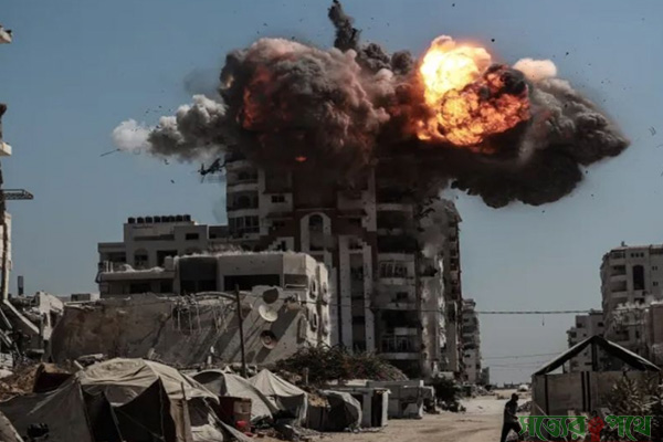 গাজা সিটির রেমাল এলাকার দক্ষিণে আল-কাওসার টাওয়ারে ইসরাইলি বাহিনী বিমান হামলা চালিয়ে টাওয়ারটি মাটির সঙ্গে মিশিয়ে দেয়। অব্যাহত বোমাবর্ষণে হাজার হাজার মানুষ পালিয়ে যেতে বাধ্য হচ্ছে। বিপর্যস্ত ফিলিস্তিনি মারওয়ান আল-সাফি বলেন, ‘আমরা জানি না কোথায় যাব। এই পরিস্থিতির সমাধান দরকার… আমরা এখানে মরছি।’
