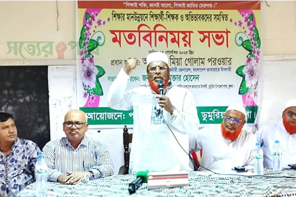 আজ রোববার দুপুরে খুলনার ডুমুরিয়া উপজেলার পল্লীশ্রী মহাবিদ্যালয় মিলনায়তনে অনুষ্ঠিত শিক্ষার মান উন্নয়নে শিক্ষার্থী, শিক্ষক ও অভিভাবকদের সমন্বিত মত বিনিময় সভায় প্রধান অতিথির বক্তৃতায় গোলাম পরওয়ার এ কথা বলেন।