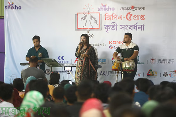 ‘স্বপ্ন দেখো জীবন গড়ো’ স্লোগানে সারা দেশে সত্যের পথে আয়োজনে ও শিক্ষার ডিজিটাল প্ল্যাটফর্ম শিখোর পৃষ্ঠপোষকতায় এসএসসি ও সমমানের পরীক্ষায় জিপিএ-৫ পাওয়া কৃতী শিক্ষার্থীদের সংবর্ধনা দেওয়া হচ্ছে। কিশোরগঞ্জ শহরতলির নেহাল গ্রিন পার্কে আয়োজিত অনুষ্ঠানে অংশ নেয় কিশোরগঞ্জের প্রত্যন্ত হাওরাঞ্চলসহ বিভিন্ন উপজেলার জিপিএ-৫ পাওয়া আট শতাধিক কৃতী শিক্ষার্থী।